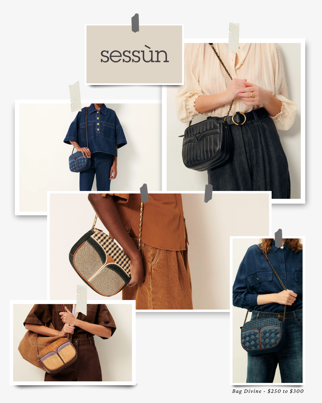 Sessùn also offers beautiful leather styles such as the Diviluz bags, which reflect the same attention to material and craftsmanship. The brand has a very recognizable visual identity that feels consistent season after season, making it a beautiful one to explore if you appreciate French brands that emphasize texture, artisanal inspiration, and timeless design.