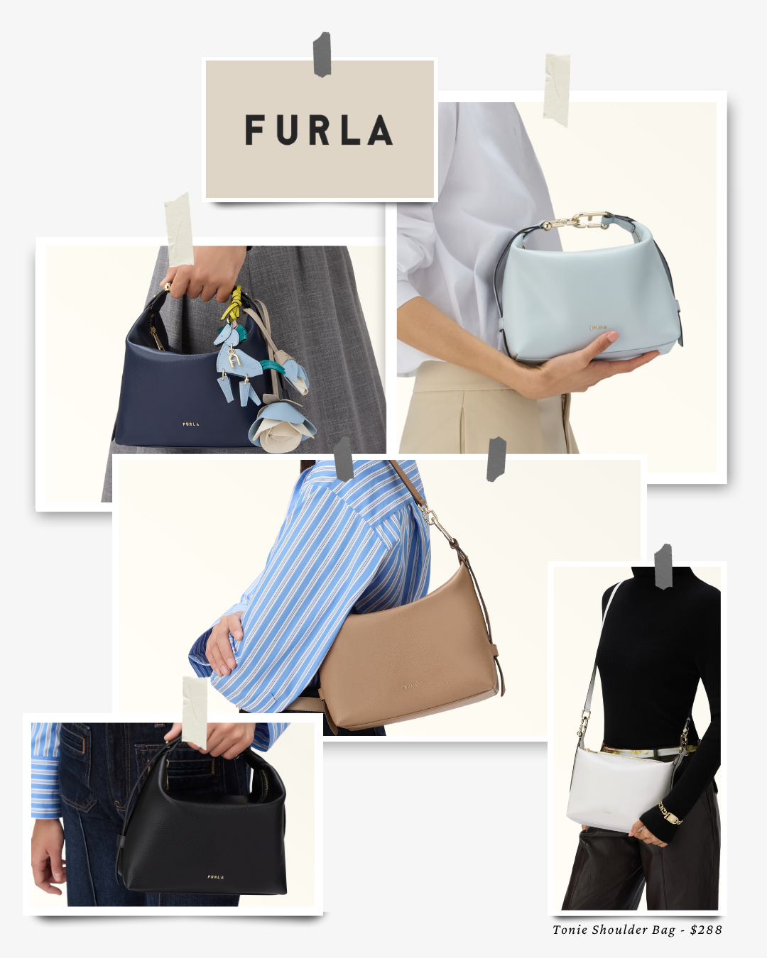 While highlighting the Tonie here, I also really like the Iride crossbody, another beautiful option that reflects Furla’s signature balance of clean lines and understated elegance. The Iride feels especially versatile for everyday wear, offering a slightly more structured silhouette that still maintains that timeless Italian sensibility.