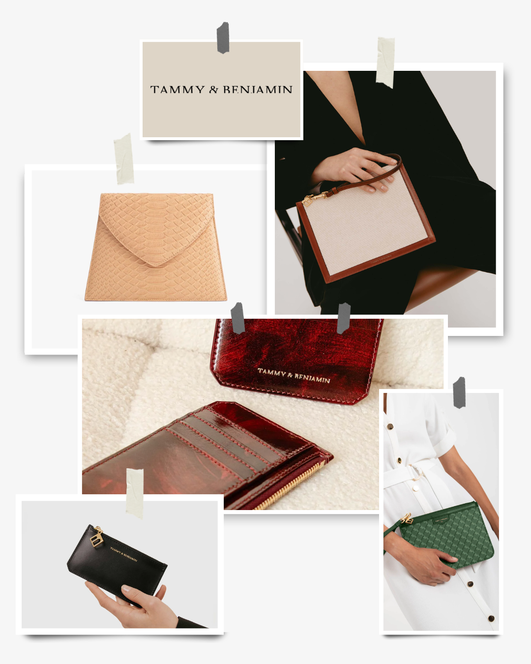 Alongside their handbags, Tammy & Benjamin also offers a selection of small leather goods that reflect the same structured and refined aesthetic as their bags. From minimalist card holders to elegant zip pouches and compact wallets, these pieces feel polished and practical, making them easy additions to an everyday wardrobe. Their designs often feature beautiful textures, subtle detailing, and timeless colors that integrate seamlessly into a well-curated collection.
