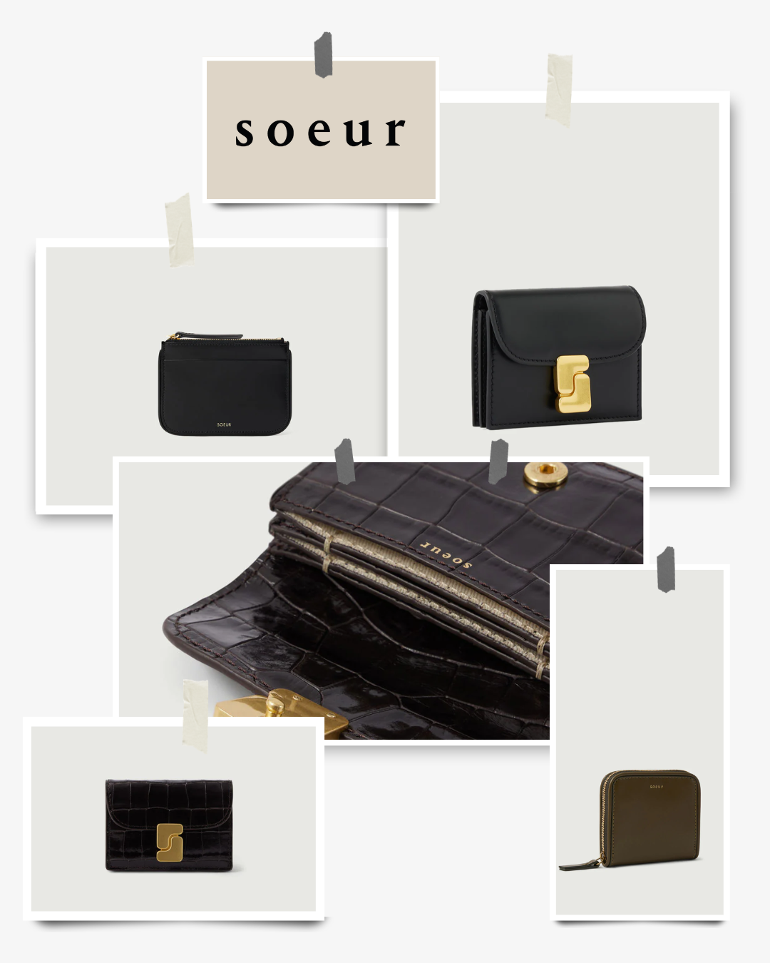 Soeur also offers a curated range of everyday wallets and small leather goods featuring their recognizable signature clasp. These pieces feel polished, functional, and timeless, ideal for those who appreciate accessories that are both practical and beautifully designed.