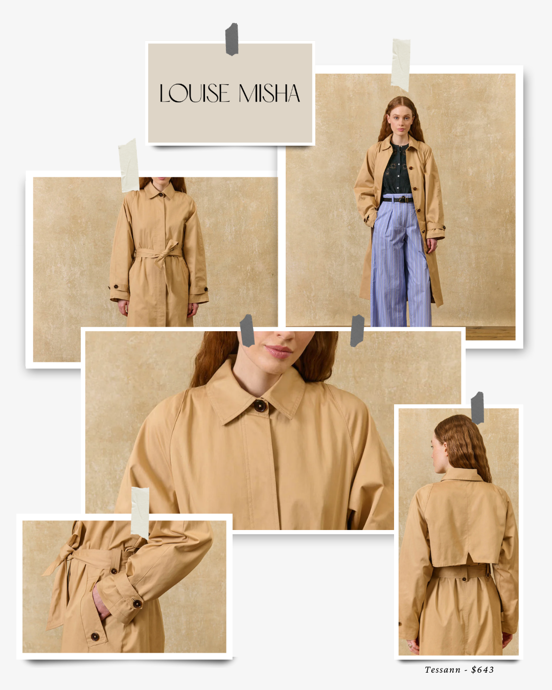 The Tessann coat, featured here, brings that signature Louise Misha sensibility to outerwear. With its softly structured shape, warm tone, and subtle detailing, it feels feminine and refined while still remaining easy to style. It’s a beautiful option if you’re drawn to a trench with a softer, more poetic feel rather than a strictly classic silhouette.