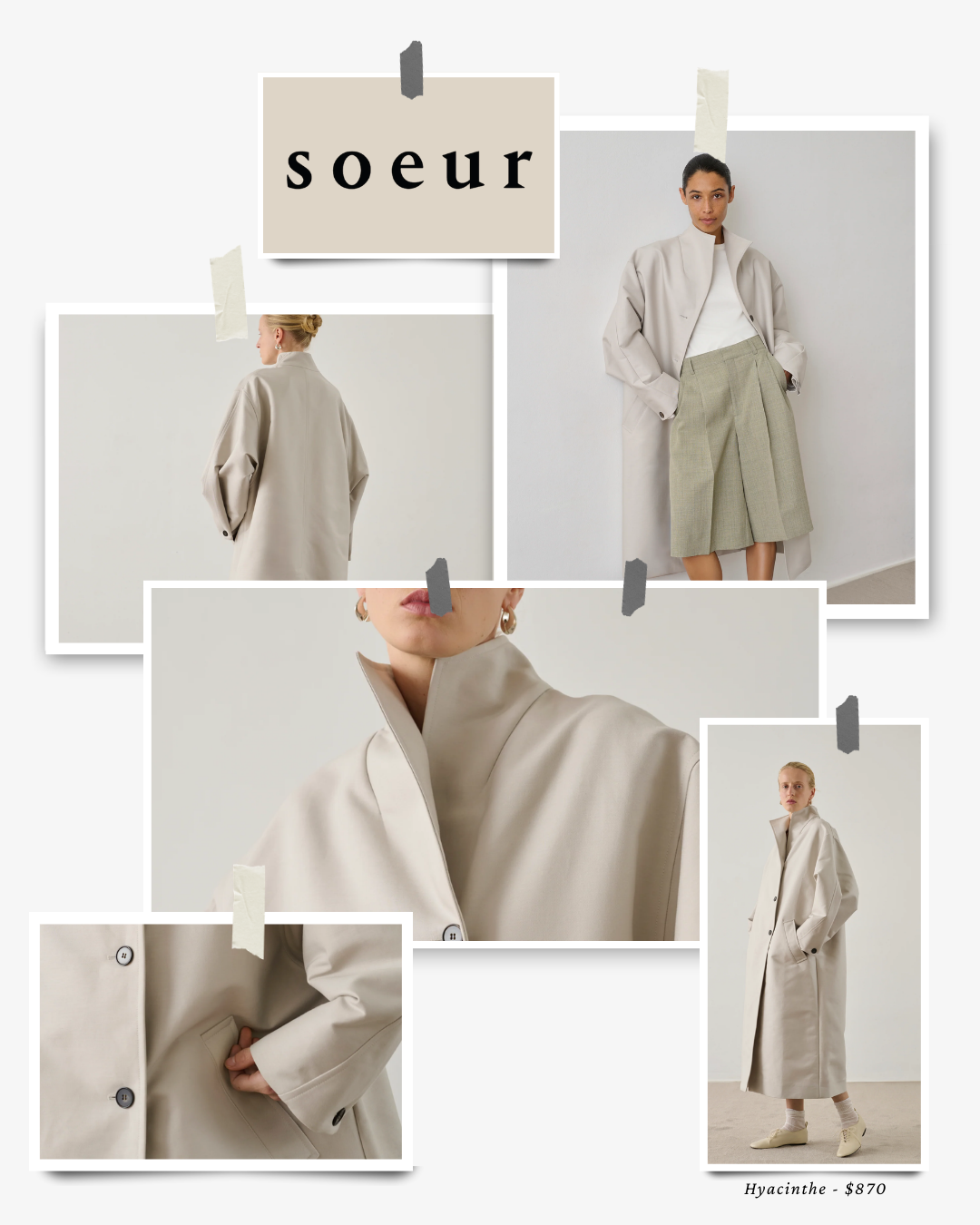 Founded in 2007 by sisters Domitille and Angélique Brion, Soeur was created around the idea of a wardrobe that plays with masculine codes while remaining deeply feminine. Parisian at its core, the brand is known for its understated elegance, thoughtful proportions, and pieces that feel lived-in rather than styled for effect.