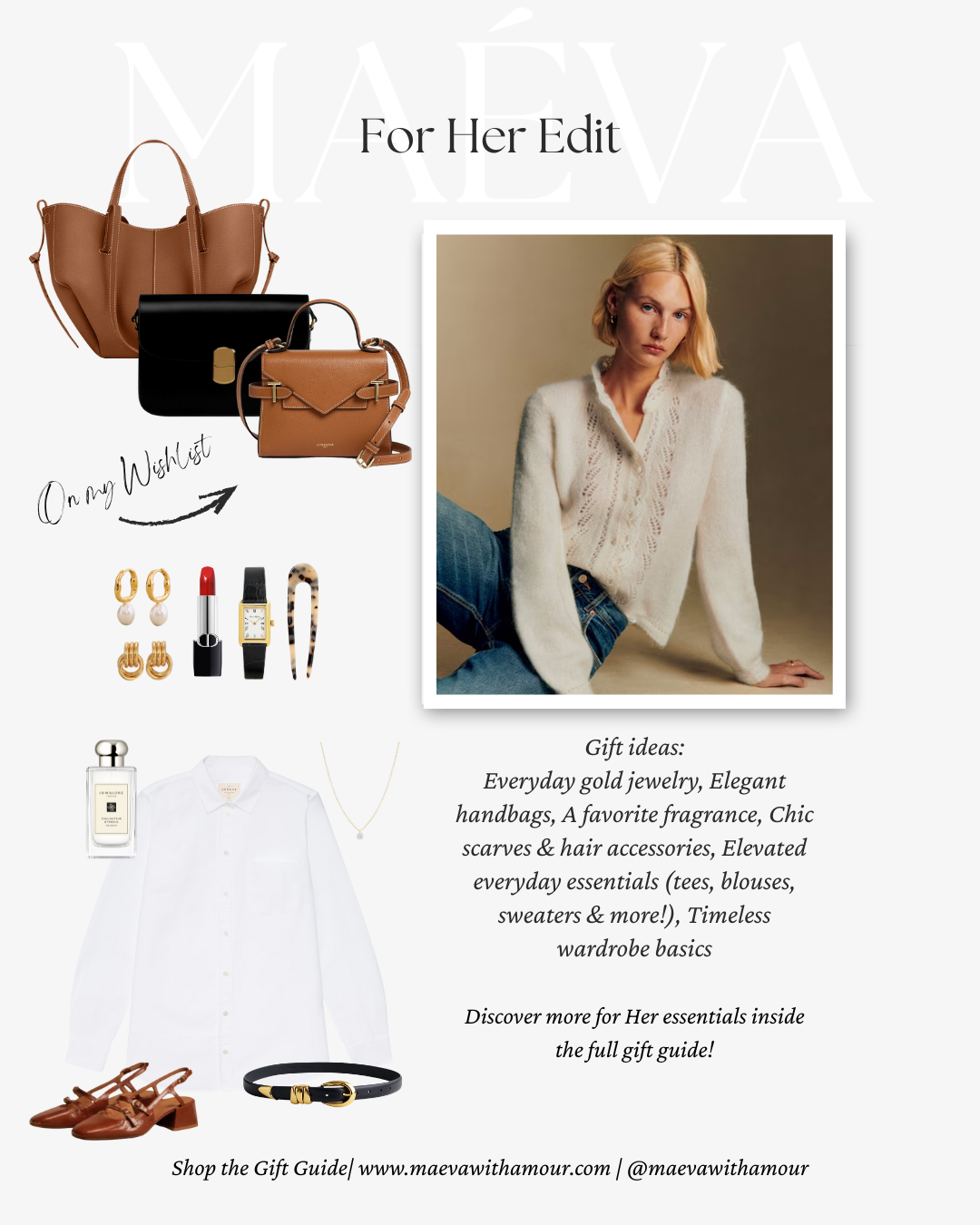 Gifting is one of the most meaningful ways to show care, whether it is for the holidays, a birthday, a hostess moment, or simply a just because surprise. This year’s Maéva Gift Guide Collection was created to make gifting feel effortless, intentional, and beautifully timeless. Inspired by French style, quiet luxury, and a few of my personal favorites, these eight curated edits highlight elevated essentials, small luxuries, and keepsake pieces that feel special long after the season ends!