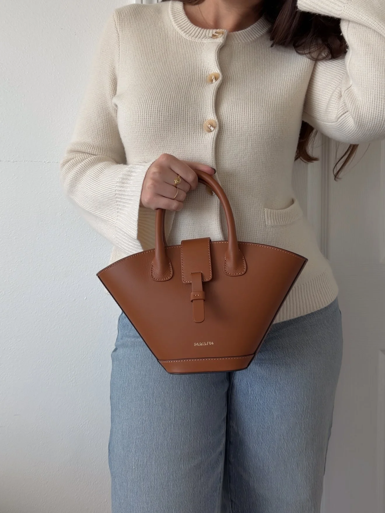 It has quickly become my go-to bag, and judging by how often it appears in my photos, it’s safe to say it works effortlessly with my everyday outfits. The shape is unique, chic, and easy to style, and it truly looks good with everything.