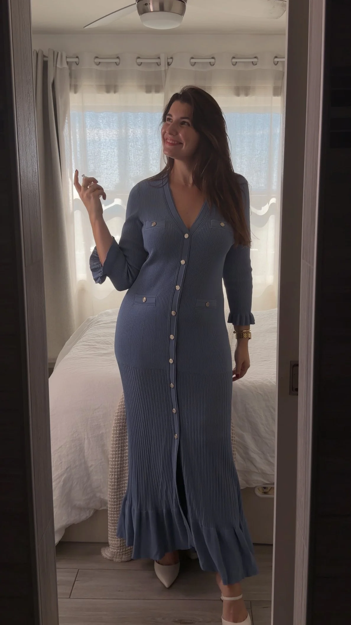 Sandro is a brand I’ve truly invested in over the years. I own two dresses that I purchased in Paris over two years ago and still wear regularly. One is a blue knit dress that I absolutely adore and receive compliments on every time I wear it. Each season, Sandro releases this style in new colors and I’m always tempted to add another. I also own their classic black pleated dress, which has become a go-to for so many occasions. I’ve worn it to business meetings as well as more formal events and it always feels polished, professional, and elevated.