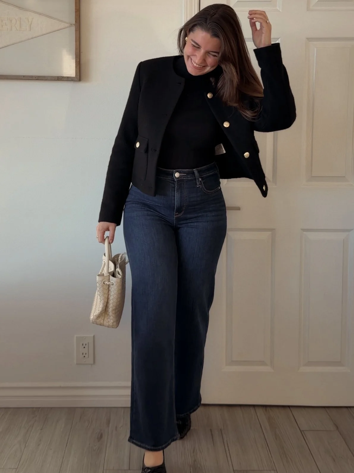 The structure instantly elevates even the simplest outfit, denim and a knit feel polished without effort