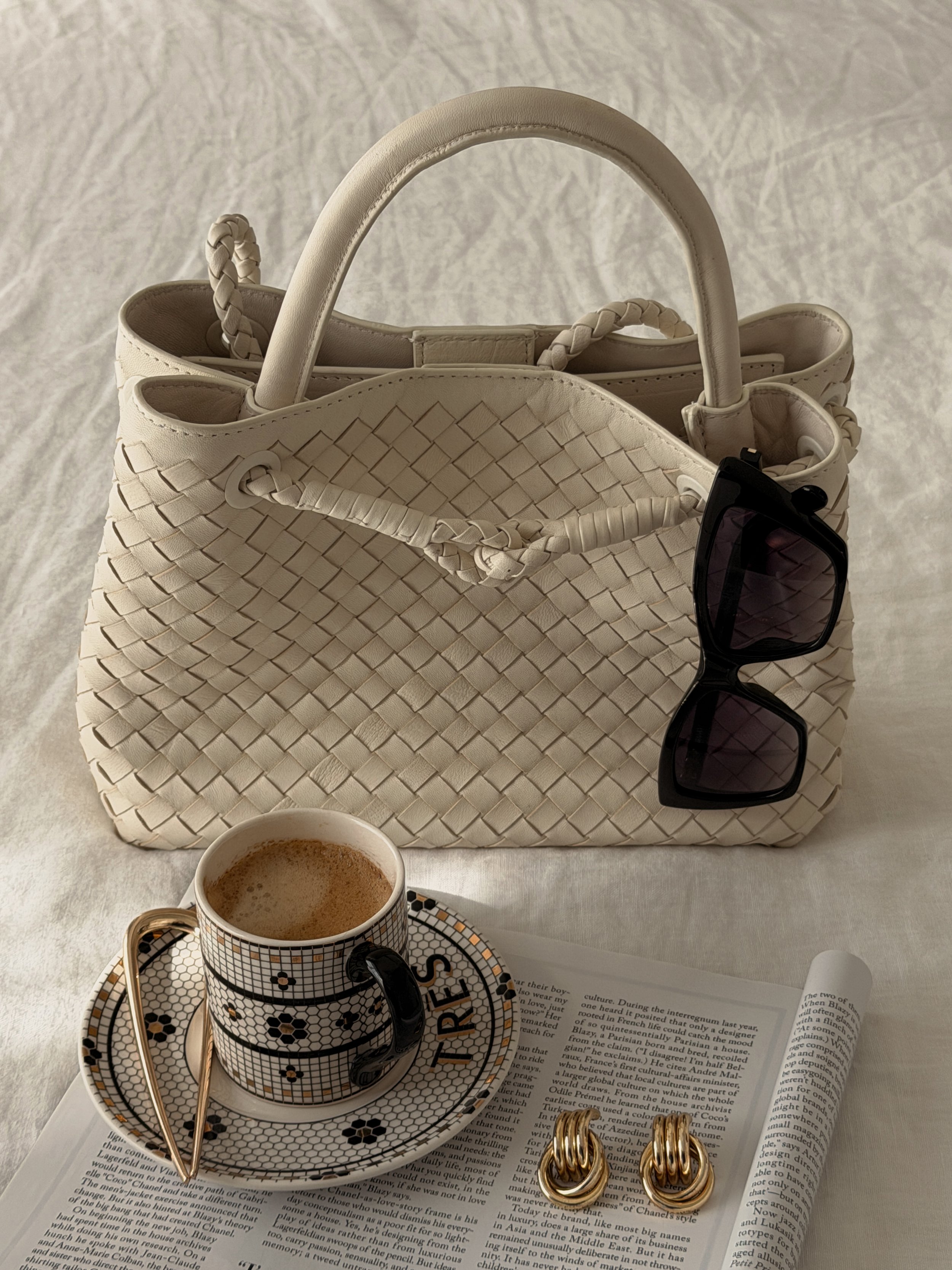 I love tying a small silk scarf to the handle to add a touch of personal flair and that effortless je ne sais quoi