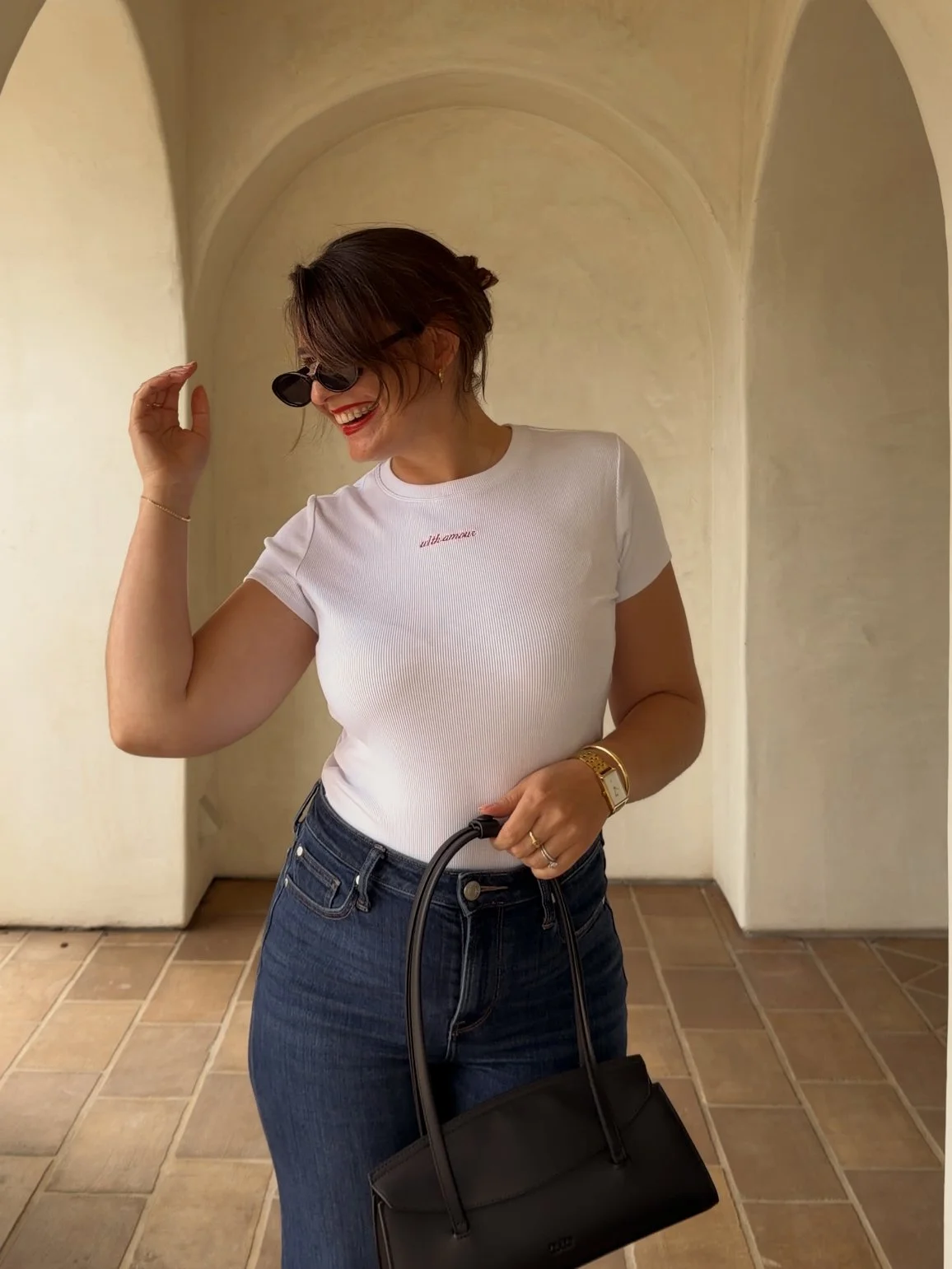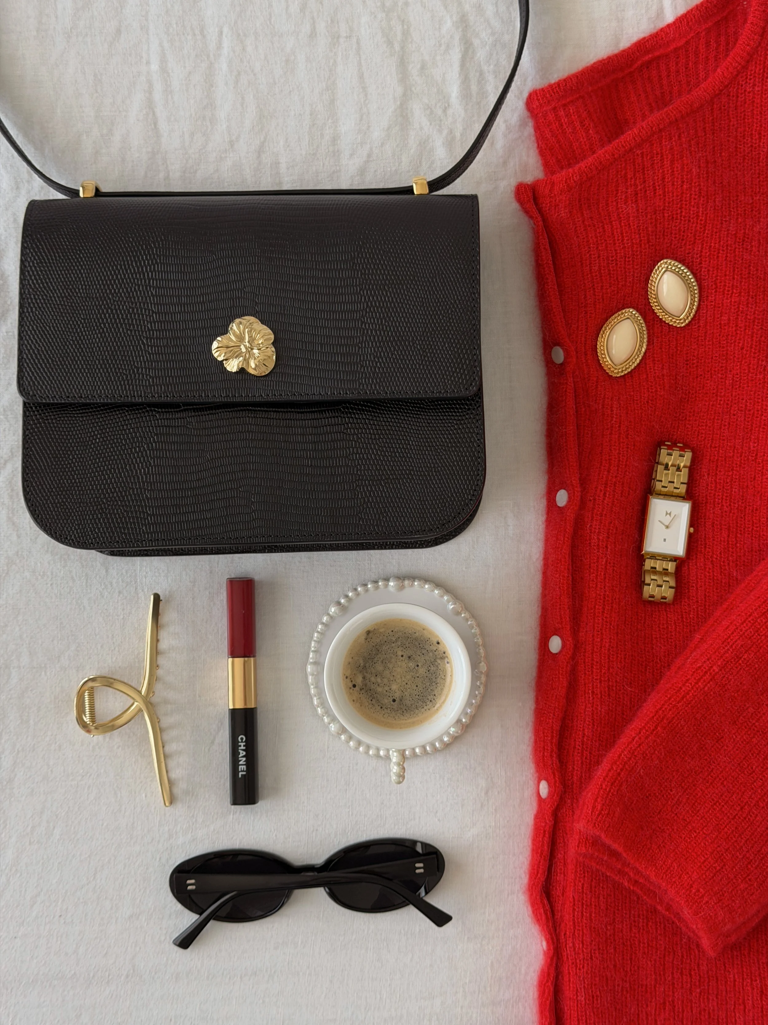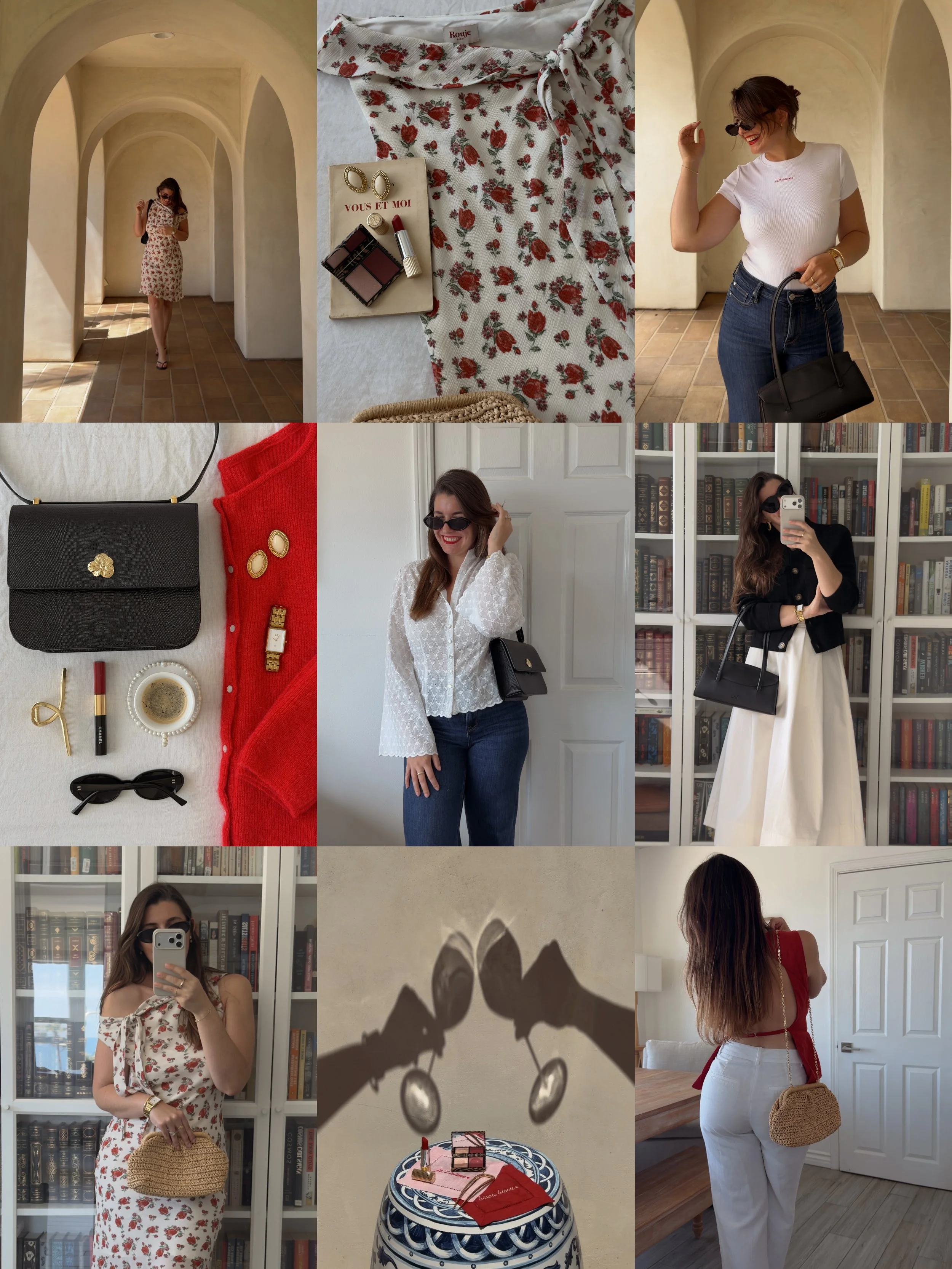 A dress I’ve worn to brunch, date nights, and evenings out with the girls. A structured leather bag that pairs beautifully with everything from denim to dresses. Tops with a bit more detail that feel especially right for warmer days, and small touches of color, like a red lip, that add just enough interest to a look.