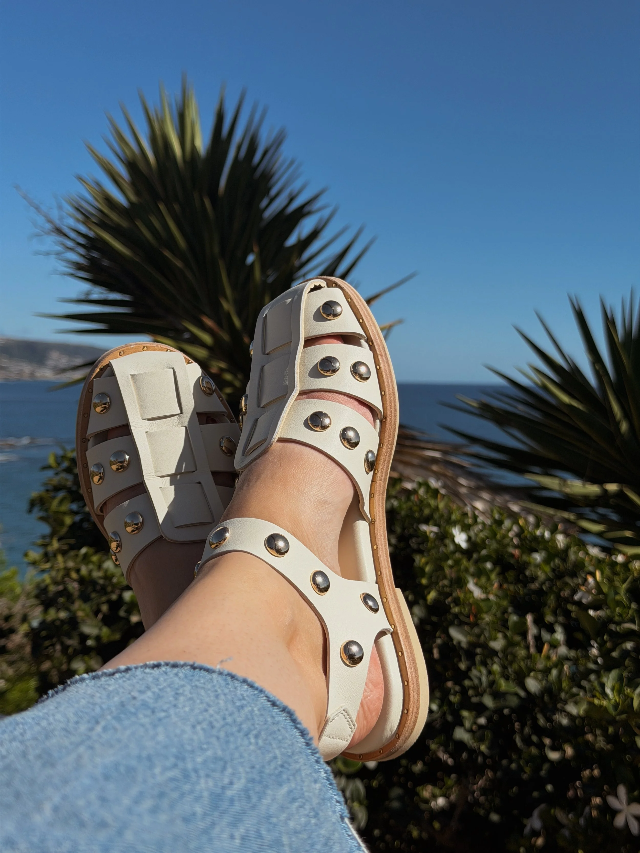 You may have already seen these sandals featured in my What to Pack for the South of France in Early Spring edit. I initially included the Freda Salvador SERA Fisherman Sandal in Dove White Calf with Gold Studs because of the exceptional reviews, particularly when it comes to comfort, which is always a priority when selecting shoes for travel.
