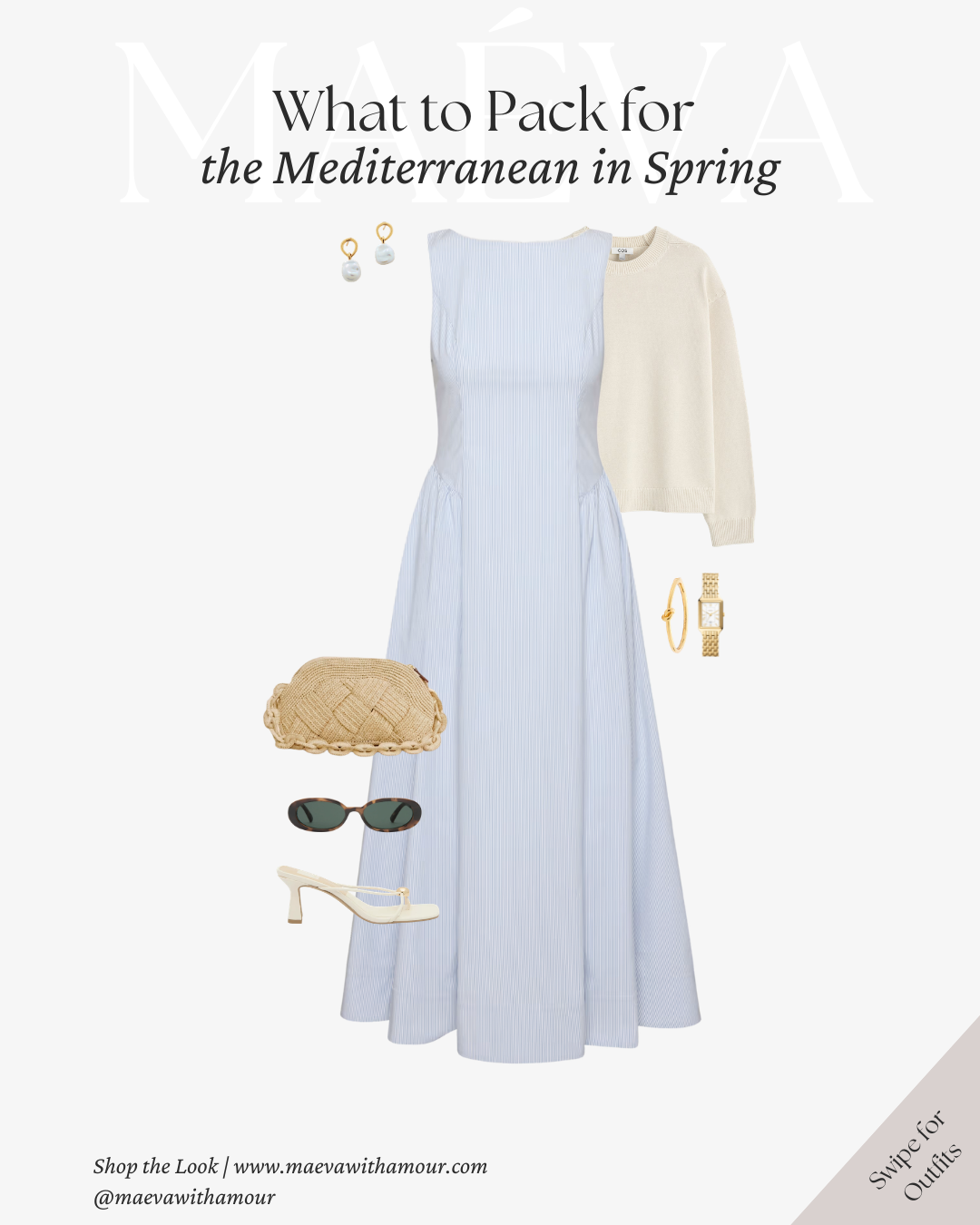 When to Wear: Perfect for exploring seaside towns along the Amalfi Coast, enjoying a slow morning in Positano, walking through the streets of Palma de Mallorca, or spending the afternoon near the water in the South of France or Portugal. This look feels especially fitting for destinations where comfort and elegance naturally go hand in hand.
